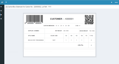 Carton Side & Main mark will print out once required product found. Scan based auto generated packing list carton add or drop facility also available. By scanning the QR code, you are getting carton’s product details without software.